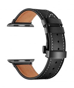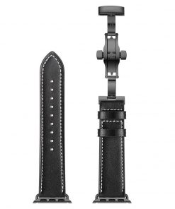 Äkta Läderarmband med Fjärilslås till Apple Watch – Svart